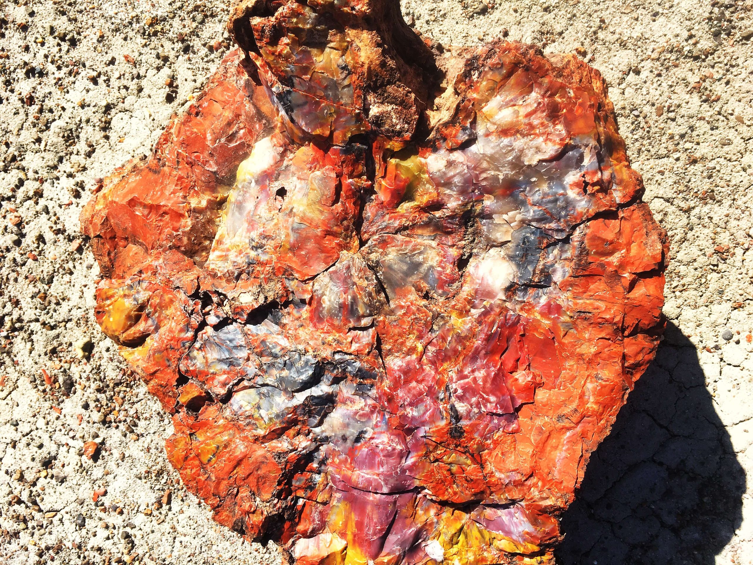 Moving on… compared to the lush green forests and dramatic landscapes of what many of us think of when we think of America’s National Parks the Petrified Forest is a rather barren and stark place, but it wasn’t always that way. 225 million years ago, what is now dry and arid desert was once a lush tropical rainforest that would have looked much like parts of Costa Rica today. Dinosaurs roamed alongside crocodilian ancestors the size of modern pick up trucks and towering stands of coniferous trees made up the forest canopy. This lush tropical forest wasn’t meant to last however, as the towering trees died and fell into the rich soils of the swamp beds slowly over time their organic matter was replaced with quartz building minerals, and these forest giants were magically preserved with stunning colors underneath the desert mesas and teepees. Wind and water are powerful forces, over time they slowly revealed these magical pieces of natural art for us to enjoy and stare at in wonder today.