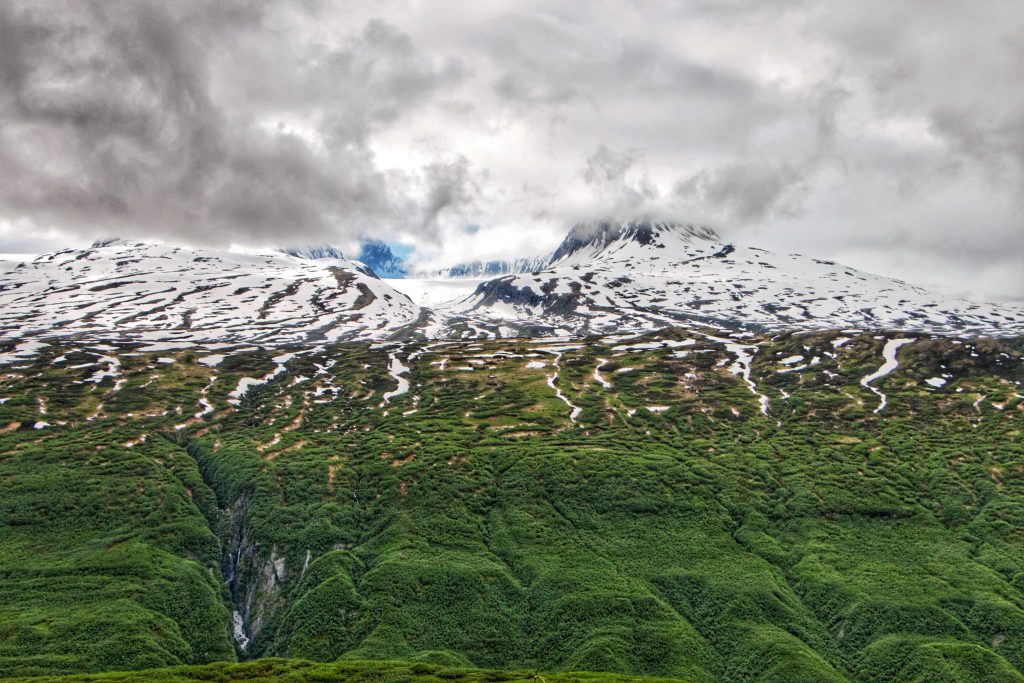 Everything that goes up, must go down… after climbing high above the tree line into the thin air of Thompson Pass the road to Valdez begins its descent into Keystone Canyon- a land of waterfalls, ancient geology, and rich history. The deep lush Hawaii-Esque green of this region will have you questioning if you’re still in Alaska.